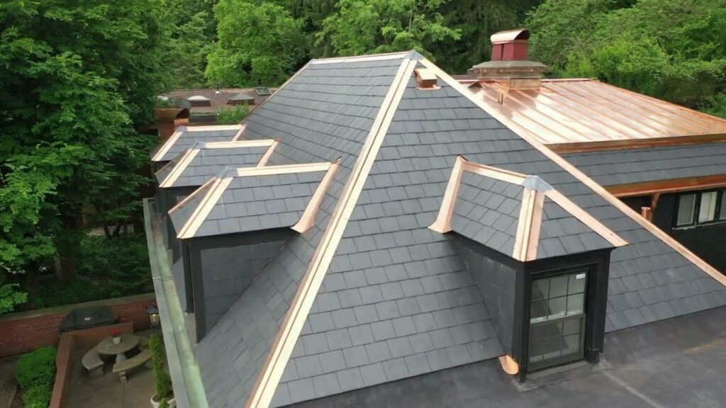 Copper and slate roofing is a timeless choice for Hollis residents seeking elegance and durability. Slate’s natural stone beauty combined with copper’s rich, evolving finish makes for a roof that is both stunning and functional. At Livingstone Roofing, we have the expertise to work with these premium materials, ensuring precise installations that last for generations. Beyond their charm, copper and slate roofs provide fire resistance, weather protection, and minimal maintenance needs. Enhance your home’s architecture and long-term value with our expert services.